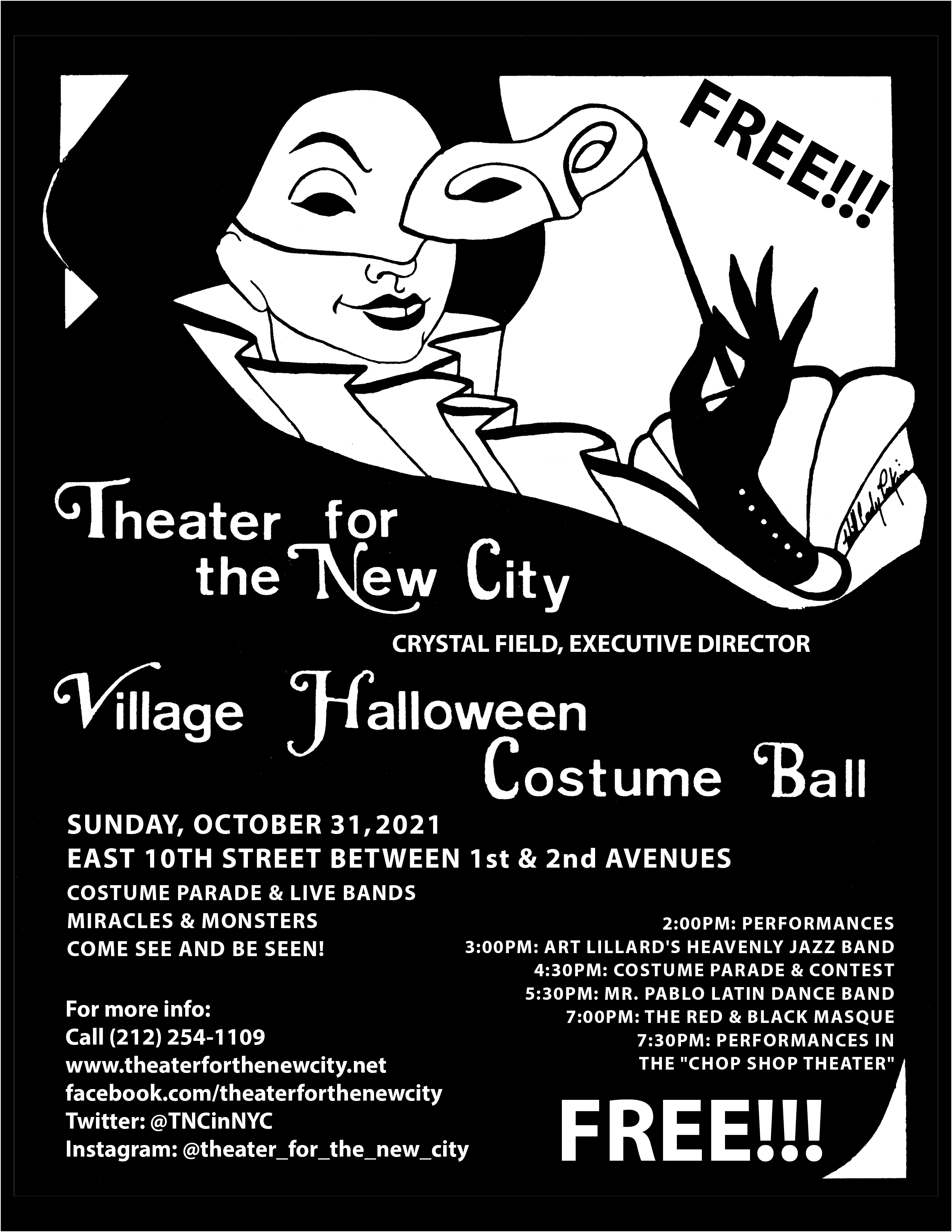 THEATER FOR THE NEW CITY’S VILLAGE HALLOWEEN COSTUME BALL MOVES OUTSIDE OCTOBER 31