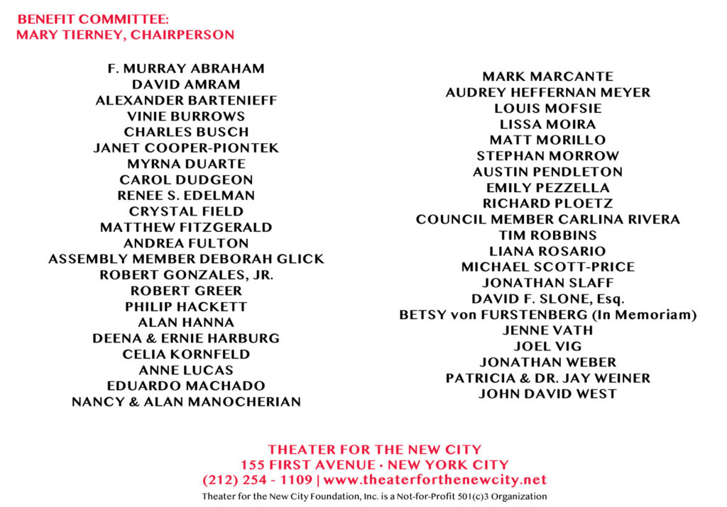 Theater for the New City’s Annual Benefit for its Emerging Playwrights Program