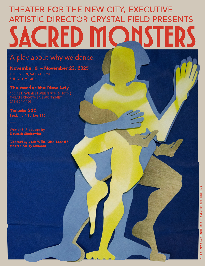 In SACRED MONSTERS, dancing is the addiction in a Dancers Anonymous support group, and all are transformed. In the tradition of documentary theater, SACRED MONSTERS began as interviews, then, in collaboration with the playwright and directors, seven dancers rewrote their experiences of mentorship, injury, isolation, impoverishment, and love in movement and dialogue unifying medium and message.