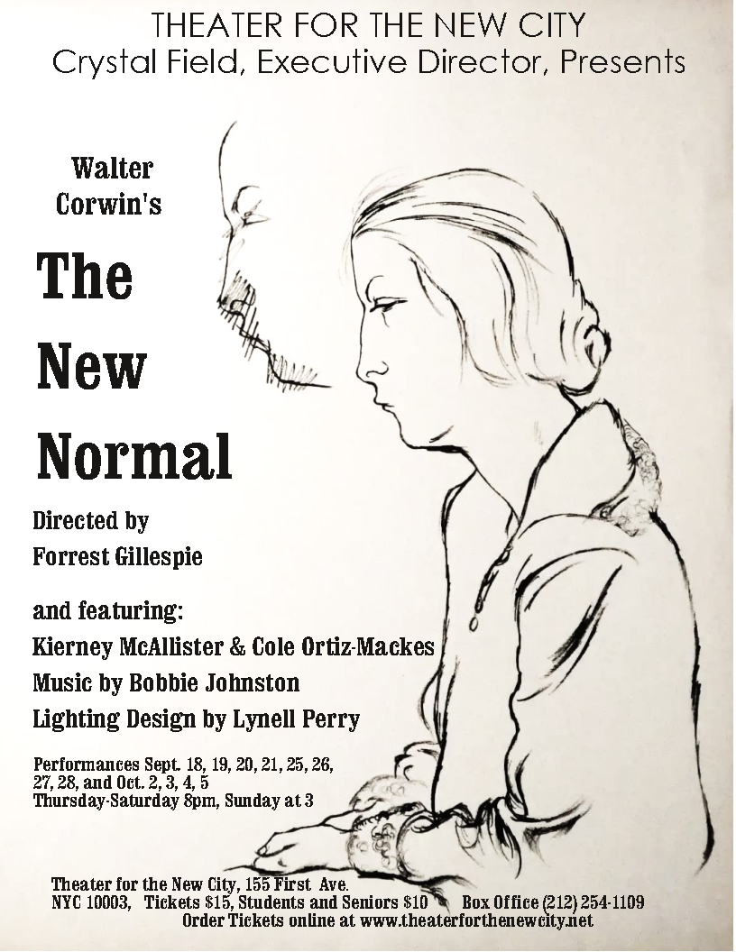 The New Normal by Walter Corwin: six short plays, each with two characters, playing a variety of personalities. The quirky heartfelt dialogues explore the person-to-person effects of America’s sharp veer to the right. A doctor attempts to console her patient while navigating his deep misogyny; two supremely unqualified individuals are out in charge of a university; the playwright argues with his wife, and Uncle Sam and Lady Liberty hold out a shred of hope. Life continues under a dark cloud.