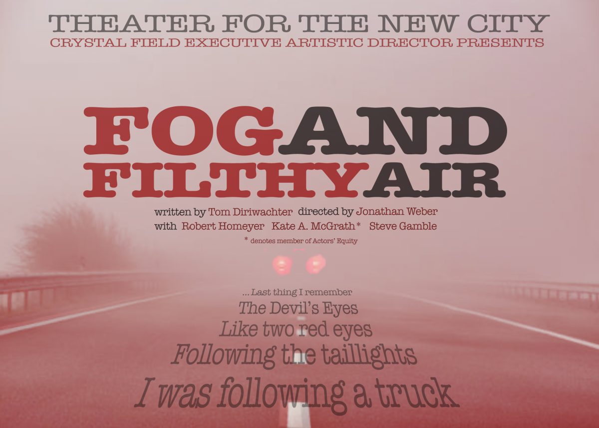 Tom Diriwachter (playwright) – Fog and Filthy Air is Tom’s eighth full-length play produced in Manhattan, and fourth at Theater for the New City. In addition, he has had numerous one-acts produced at various theaters and festivals in New York and Los Angeles, including the Strawberry Festival, the Turnip Festival, Love Creek, Ensemble Studio Theatre, and West Coast Ensemble. He has been a featured artist in the LES Festival for the past decade. His play Great Kills starred Joe Pantoliano. Asterisk, his play about the baseball steroid crisis, was archived by the New York Public Library for the Performing Arts at Lincoln Center. Recently, he completed his first novel, Good Money After Bad.