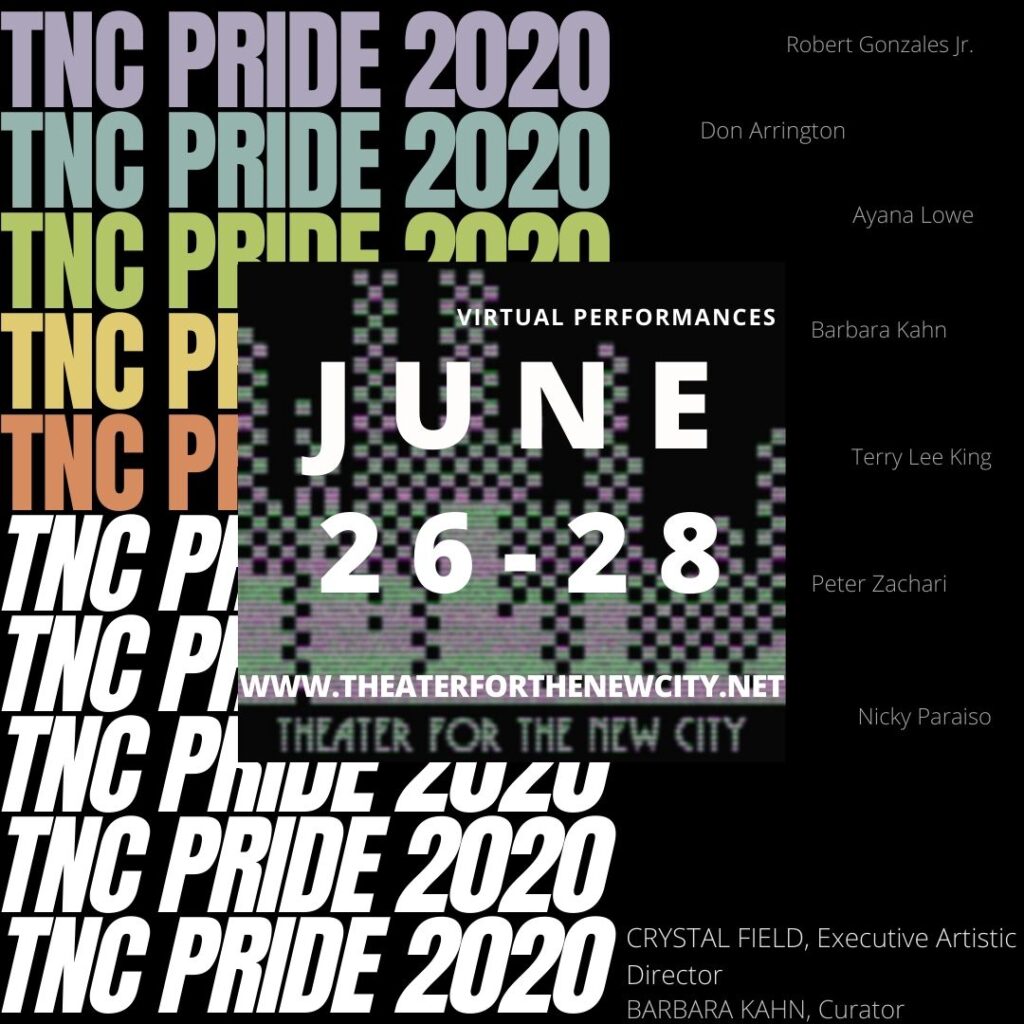 On behalf of Theater for the New City, Donald Arrington, Ayana Lowe, Barbara Kahn, Terry Lee King, Peter Zachari, Robert Gonzales Jr. and Nicky Paraiso wish everyone Happy Pride 2020.