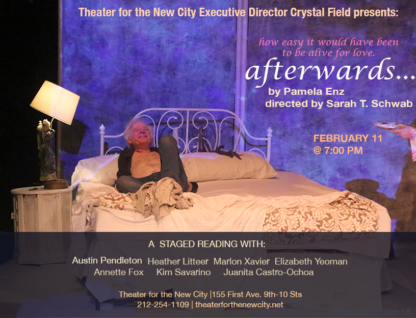 Austin Pendleton starred in “City Girls & Desperadoes” Enz’s play he’d generously shepherded for years up until its Theater for the New City premiere Jan. 2018 after which Pamela became increasingly interested in revisiting City Girls’s characters wondering how they might have fared after its grand denouement.