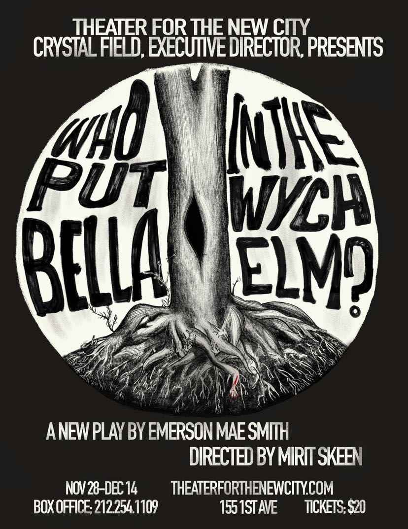 WHO PUT BELLA IN THE WYCH ELM? is a one-act horror dramedy set in 2048 on the banks of Lake Michigan in her wild upper peninsula. Harper, a transmasc med student, returns to the campsite they spent their childhood summers protected in, alongside best friend Olive and her new girlfriend Gray.