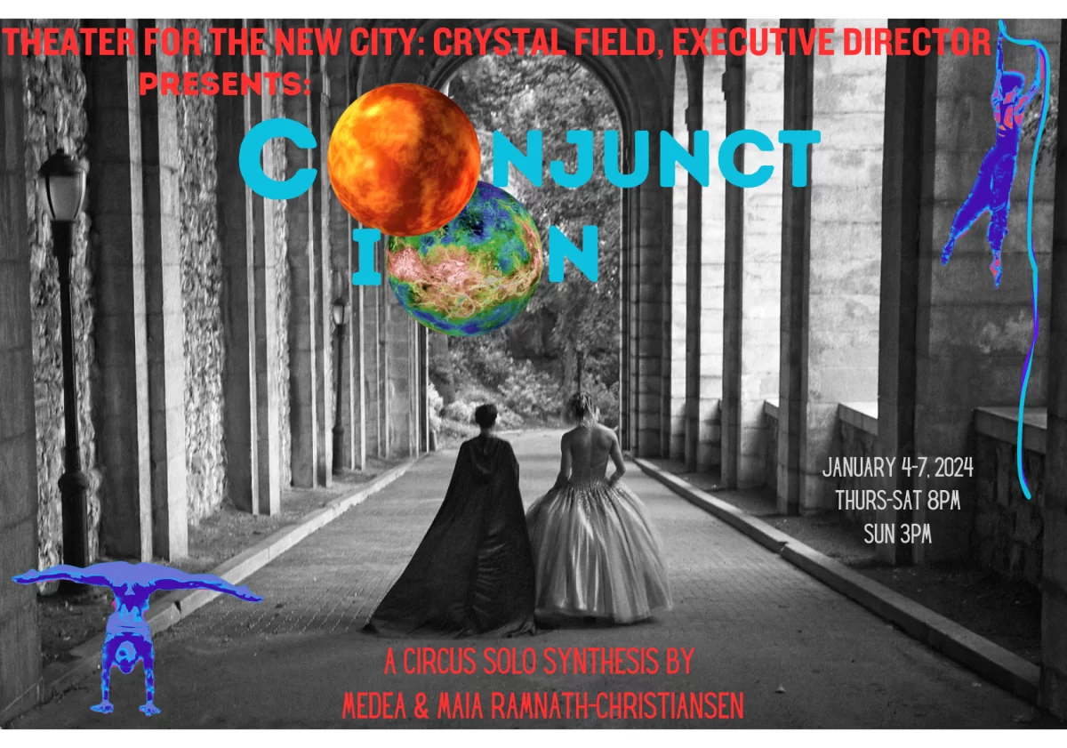 Conjunction is a tale of two travelers, told through a blend of aerial, dance, contortion, text and video.