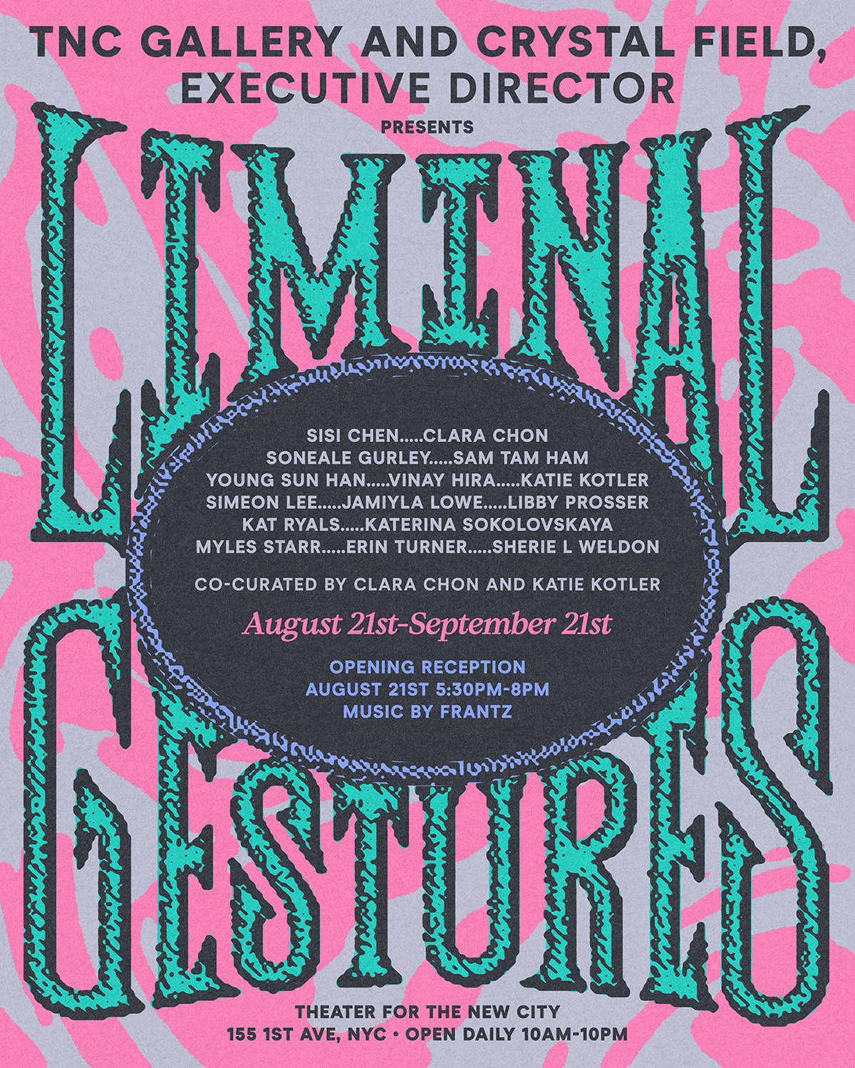 Liminal Gestures, presented within the storied halls of Theater for the New City, brings together a diverse group of 15 artists whose practices traverse textiles, media arts, painting, sculpture, ecological inquiry, and feminist critique. Rooted in an East Village landmark known for its unwavering commitment to inclusivity and egalitarianism, the exhibition transforms this historic space into a forum for critical engagement. Through explorations of multiplicity and collective experience, the works echo the theater’s long standing dedication as a space for all voices.