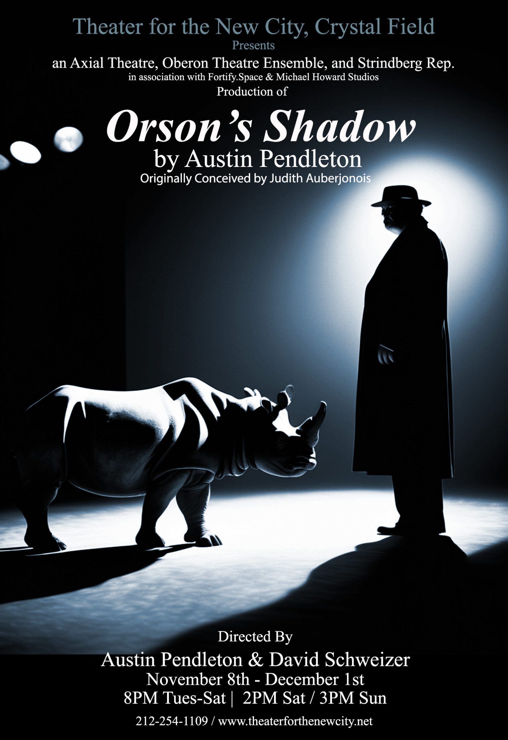 THEATER FOR THE NEW CITY Executive Director, Crystal Field Presents an Axial Theatre, Oberon Theatre Ensemble, & Strindberg Rep. in association with Fortify.Space & Michael Howard Studios Production of Orson’s Shadow Theater for the New City presents a remount of “Orson’s Shadow” by Austin Pendleton, directed by Mr. Pendleton and David Schweizer Originally Conceived by … Continue reading Orson’s Shadow (Nov 2024)