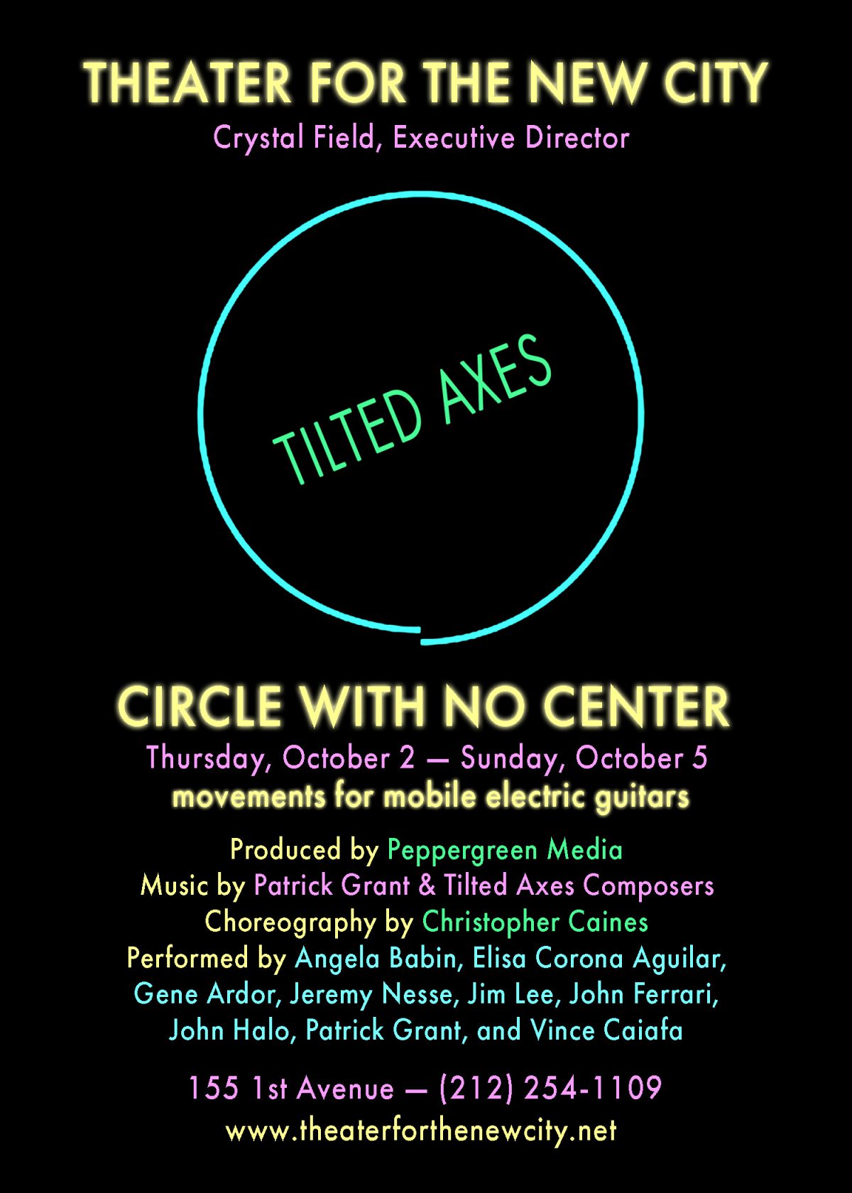 Tilted Axes: Music for Mobile Electric Guitars is an innovative performance ensemble that takes music off the stage and into unexpected places — streets, galleries, museums, and theaters. With amplified sound, choreography, and public engagement, Tilted Axes turns each performance into a unique, site-specific event.